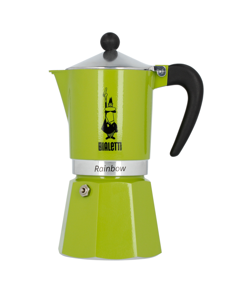 The Bialetti Rainbow 6-Cup Green coffee maker is the perfect choice for those who want to enjoy a delicious Italian espresso while adding a splash of color to their kitchen. Its bright green finish makes this coffee maker an attractive decorative piece, ideal for any modern space.