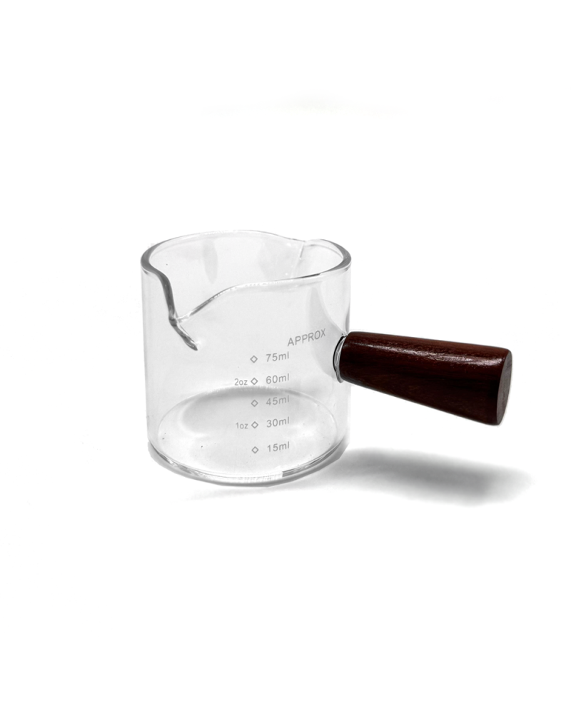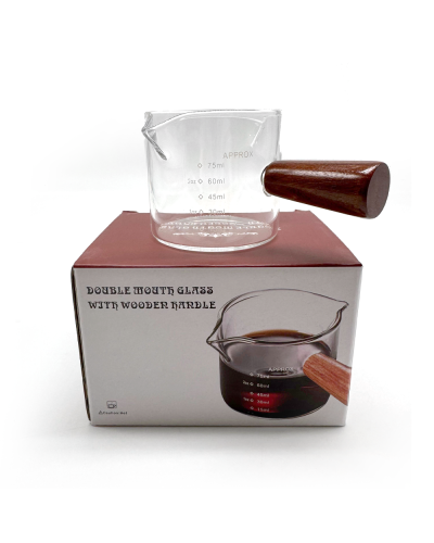 Beautiful wooden handle adds a touch of elegance to this espresso shot glass. Control for the perfect shot.