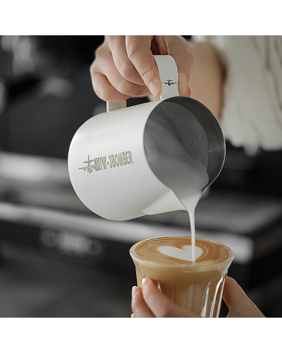 The 3.0 pitcher is perfect for creating creative and precise latte art. Its rounded spout and long double-arched indentation ensure a smooth and controlled pour. Additionally, its ergonomic design made of stainless steel and heat-resistant paint makes it a durable and practical tool. Unleash your potential with the 3.0 milk pitcher!