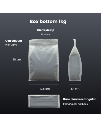 Bolsas de Café Box Bottom 1Kg Blanco Transparente Sin Aluminio (250 uds)