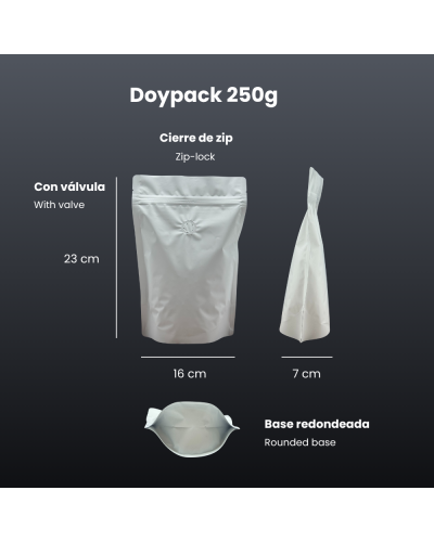 Bolsas de Café Doypack 250g Turquesa con aluminio (250 uds)