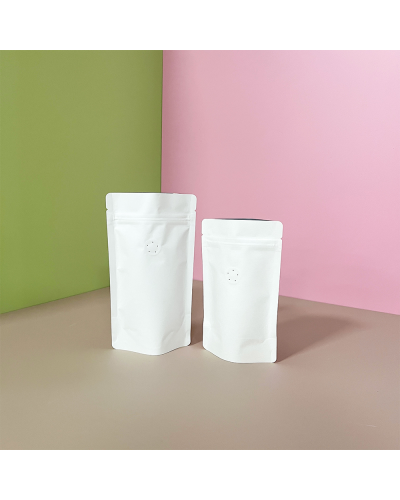 Bolsas de Café Doypack 100g Papel Kraft Blanco con Aluminio (250 uds)