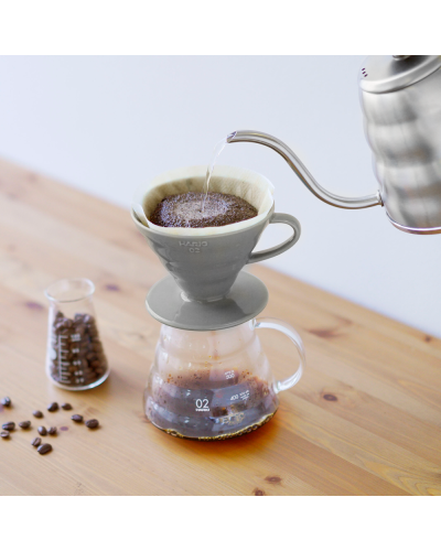 El V60 Dripper Cerámica 02 Gris de Hario es una excelente herramienta para preparar café filtrado con precisión y estilo. Su diseño en espiral, junto con la cerámica de alta calidad, permite una extracción uniforme del café molido, garantizando una taza de café equilibrada y con cuerpo. El color gris aporta un toque moderno y minimalista, convirtiéndolo en un accesorio elegante para cualquier barista casero.