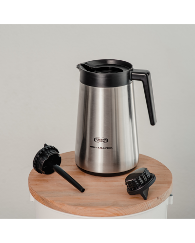 El Termo para KBGT de 1.25L de Moccamaster es una pieza esencial para aquellos que valoran la frescura y la temperatura ideal de su café. Este termo de acero inoxidable mantiene el café caliente durante horas sin necesidad de una placa caliente, preservando su sabor y aroma. Diseñado para ser utilizado con las cafeteras Moccamaster KBGT, este termo también cuenta con una tapa hermética que evita derrames y mantiene el café perfectamente mezclado gracias a su mecanismo interno de mezclado. Es ideal para oficinas, reuniones o cualquier situación donde desees disfrutar de café caliente por más tiempo